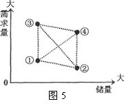 图5为某区域某种自然资源储量和需求量关系图。读图回答18-19题。![]()