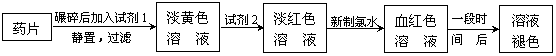 某同学为了检测“速力菲”药片中Fe2+的存在,设计并进行了如下实验:
