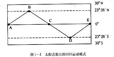 (3)太阳直射点从A-B-C-D-E移动所经历的时间为一个____________年。