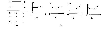 8.如图甲所示,一个闭合矩形金属线圈abcd从一定高度释放,且在下落过程中线圈平面始终在竖直平面上。在它进入一个有直线边界的足够大的匀强磁场的过程中,取线圈dc边刚进磁场时t一0,则描述其运动情况的图线可能是图乙中的 ( )