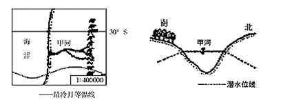 下图表示某地区“最冷月等温线”和图中“河流剖面”示意图,读图,完成4-6题。