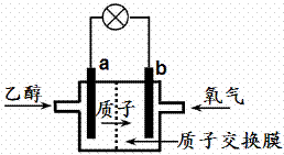 (2)发展燃料电池可减少有害气体的排放,04年美国科学家研制了一种新型的乙醇电池,它用磺酸类质子溶剂,在200℃左右时供电。电池总反应为:C2H5OH + 3O2==2CO2 + 3H2O,电池示意图如右。试写出a极的电极反应式: