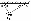 2.如右上图所示,两绳AB、AC相交于A点,两绳与天花板间夹角大小分别为600和300,现用一力F作用于交点A,与右绳夹角为