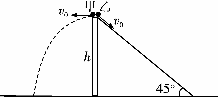 v0沿倾角为45°的光滑斜面滑下。若甲、乙同时到达地面,则 v0的大小是![]()