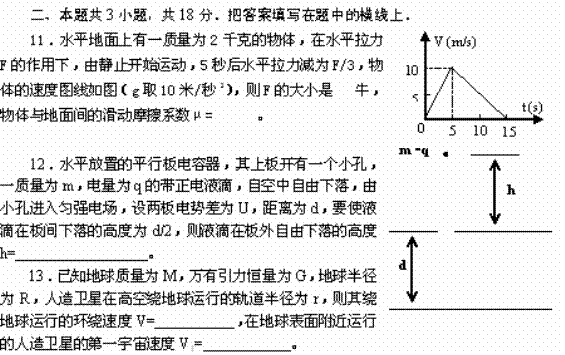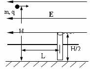 16.(12分)如图,质量m,带电量+q的小球从距地面高H处,以一定的初速度水平抛出,在距抛出点水平距离L处,有一根管口比小球直径略大的竖直细管,上管O距地面H/2,为使小球能无碰撞地通过管子,可在管上方的整个区域里加一个场强为E,方向水平向左的匀强电场,求:![]()