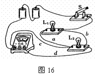 27.如图16所示,闭合开关S ,电路将是 路(选填“开”、“短” 或“通”),要使电路中的两灯串联,则应拆除导线 。