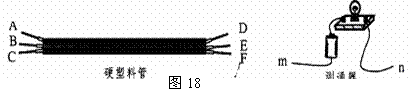 ⑴ 连接A和B,将测通器的m连接在D上。当n连接F时小灯泡发光,连接E时小灯泡不发光。由此可以确定 为同一根导线的两端(填字母,下同)。