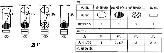 一位同学设计了如图19所示的四个滑轮组,并将实际数据填入下表。