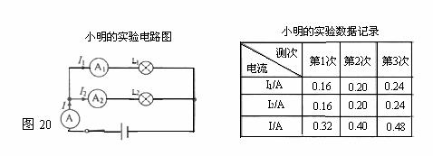 如图20所示.(小明实验时电路连接及记录的数据都没有错误).