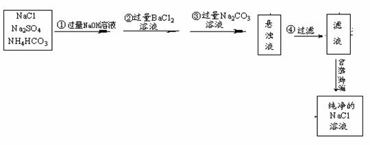 32.(16分)现需要纯净的氯化钠溶液,但实验室中只有混有硫酸钠、碳酸氢铵的氯化钠固体。甲、乙两同学分别设计一个都认为是比较合理的方案除去杂质获得纯净的氯化钠溶液: