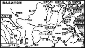 [解析] 本题以南水北调方案示意图为背景考查区域资源调配的线路选择及对区域发展的影响。同时考查学生读图分析能力,解题的关键是明确南水北调工程的线路及其影响。