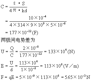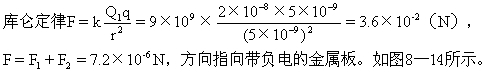 [错解分析]错解:点电荷受到两板带电荷的作用力,此二力大小相等,方向相同,由