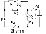 例16 如图8-15电路中,电键K1,K2,K3,K4均闭合,在平行板电容器C的极板间悬浮着一带电油滴P,
