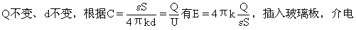 例19 A,B两块平行带电金属板,A板带负电,B板带正电,并与大地相连接,P为两板间一点。若将一块玻璃板插入A,B两板间,则P点电势将怎样变化。