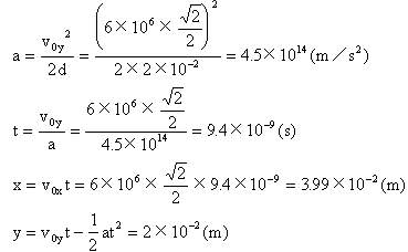 [小结] 因此电子将做一种抛物线运动,最后落在下板上,落点与出发点相距1.03cm。