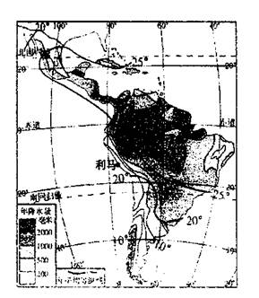 (七)读“南美洲年降水量”图,回答下列问题:(15分)