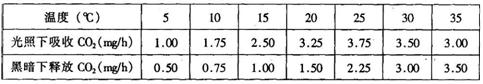 22.将某绿色植物放在特定的实验装置中,研究温度对光合作用与呼吸作用的影响(其余的实验条件都是理想的),实验以C02的吸收量与释放量为指标。实验结果如下表所示: