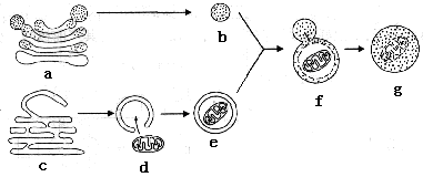 (1)b是刚形成的溶酶体,它起源于细胞器a;e是由膜包裹着衰老细胞器d的小泡,而e的膜来源于细胞器c。由图示可判断:a是 ,c是 ,d是 。