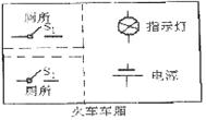 24、(2分)火车在车厢后面有两间厕所,只有当两间厕所的门都关上时(每扇门的插销相当于一个开关),车厢中的指示牌内的指示灯才会发光,指示牌就会显示“厕所有人”字样,提醒旅客两间厕所内部都有人,请你把图中的各元件符号连接成符合上述设计要求的电路图。
