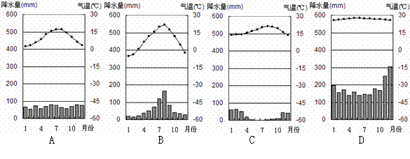 4. 下列四幅图能反映火灾发生地气候特点的是资源