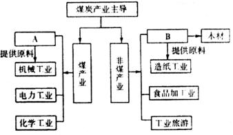 (2)产业结构调整模式图中,字母A表示工业,B表示工业。