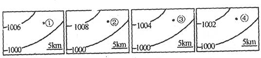4.图2-2的四幅等压线分布图中,①②③④四地风力由大到小的正确排序是 ( )