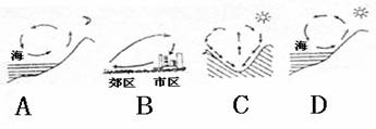 (2)在图中用粗线标出城市与郊区之间的热力环流的方向。