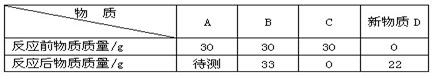 在一密闭容器中,盛放A、B、C三种物质各30g,加热充分反应后,各物质