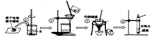 (常州市礼河实验学校调研测试试卷)(4分) 某小组同学对废干电池筒内的黑色固体(内含有MnO2、NH4Cl、ZnCl2等)进行了如下图所示的实验:
