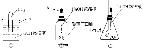 小明学习了NaOH的性质后, 为了探究CO2和NaOH是否发生反应时,设计出下列三种装置进行实验: