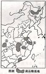 (2)商品粮基地①与④相比,其不利的气候条件是 。(2分)