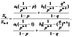 8.已知数列{an}、{bn}都是由正数组成的等比数列,公比分别为p、q,其中p>q且p≠1,q≠1,设cn=an+bn,Sn为数列{cn}的前n项和,求![]()