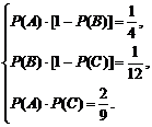 解:(1)设A、B、C分别为甲、乙、丙三台机床各自加工的零件是一等品的事件,