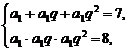 [例1] 已知等比数列{an}中,a1+a2+a3=7,a1a2a3=8,求an.