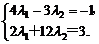 即-l1+3l2=(4λ1-3λ2)l1+(2λ1+12λ2)l2,