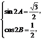 且A、B∈R时,y=f(A,B)的图象按向量p平移后得到函数y=2cos2A的图象,求满足上述条件的一个向量p.