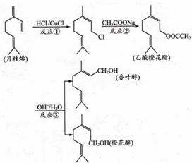 8.(上海市嘉定区2010届高三上学期期末质量调研)香叶醇、橙花醇和乙酸橙花酯在工业上用作香料,它们可由月桂烯来合成。