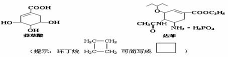 11. (浙江省永嘉三校2010届高三上学期期中联考)目前世界各国在抗击甲型H1N1流感,达菲(Tamiflu)被世界卫生组织推荐作为治疗和预防甲型H1N1流感的有效药物之一,它是由我国特有中药材八角的提取物--莽草酸(shikimicacid)为原料经过十多步反应合成的。已知莽草酸和达菲的结构式如下:
