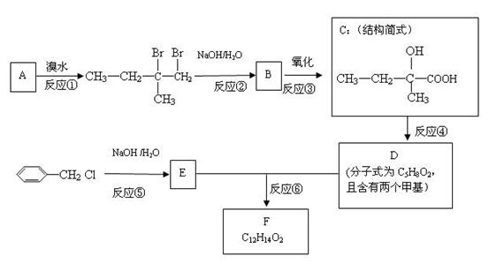 有机物A-F中,A 是链烃,A 与 H2 加成得到烷烃,经测定,该烷烃分子中只有两个-CH3, 其一卤代物有两种同分异构体,C 与X 反应生成D。各物质之间的转化关系如下图所示: