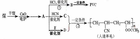 18. (四川梓潼一中高2009级高考模拟理科)近年来,由于石油价格不断上涨,以煤为原料制备一些化工产品的前景又被看好。下图是以煤为原料生产聚氯乙烯(PVC)和人造羊毛的合成路线。