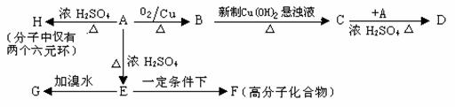 19.(双流县2009届高中毕业班理科综合能力测试)芳香族化合物A有两个邻位取代基,且A的相对分子质量不超过180,完全燃烧只生成CO2和H2O;A中氧元素的质量分数为28.92%。A-H有如下转化关系: