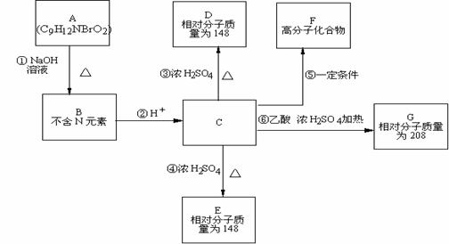 II. 芳香族化合物A(化学式为C9H12NBrO2)在一定条件下有如下的转化关系,其中1mol C与Na完全反应生成1 mol H2,若与NaHCO3完全反应也能产生1mol CO2,D和E互为同分异构体,但D可以使溴的四氯化碳溶液褪色,而E分子中有一个苯环和一个五元环。