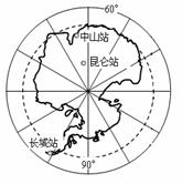 2009年1月27日,我国首个南极内陆科学考察站昆仑站(80°25′S,77°06′E)在南极内陆冰盖的最高点冰穹A地区胜利建成。这是继长城站(62°12'S,58°57'W),中山站(69°22'S,76°22'E)之后,我国建成的第三个南极科学考察站。请回答12-15题。