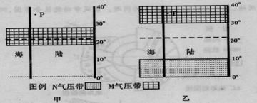 33.甲图所示季节各纬度带气流运动的说法正确的是