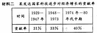 (1)材料一、二分别反映了科学技术发展的哪些特点?(4分)