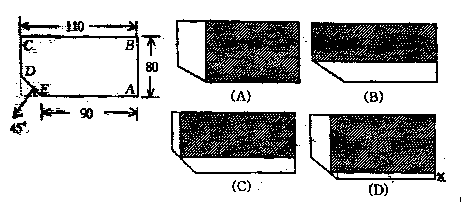 12、有一块“缺角矩形”木板ABCDE,其尺寸如图所示。欲用此木板锯成一块规则长方形木板,以下四种方案中哪种锯得的面积最大( )