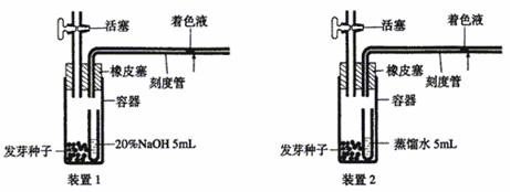 关闭活塞,在25℃下经20分钟读出刻度管中着色液移动距离。设装置1和装置2的着色液分别向左移动xmm和ymm。x和y值反映了容器内气体体积的减少。请回答: