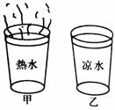 12.如图1.4-20,甲杯是热水,乙杯是常温的凉水,我们会看到甲杯中的水“冒热气”,而乙杯中的水“不冒热气”.请你回答“冒热气”是什么物理现象.用学过的物理知识解释热水“冒热气”和凉水“不冒热气”的原因.
