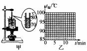 (3)当水温接近90℃时,每隔1min记录一次温度,根据表格里记录的数据,请你在下面的小方格纸图1.4-23乙上画出水的沸腾图像;
