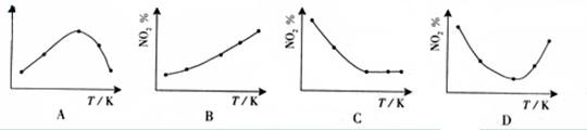 N2O4(g),ΔH<0 反应相同时间后,分别测定体系中NO2的百分量(NO2%),并作出其随反应温度(T)变化的关系图。下列示意图中,可能与实验结果相符的是